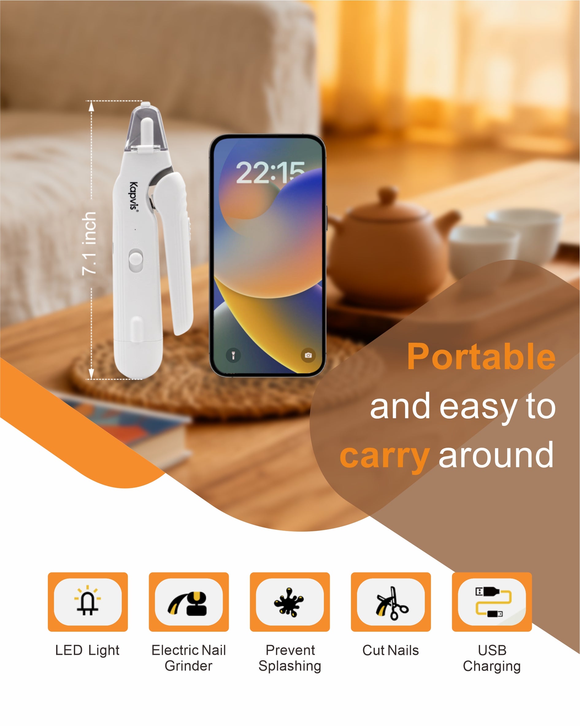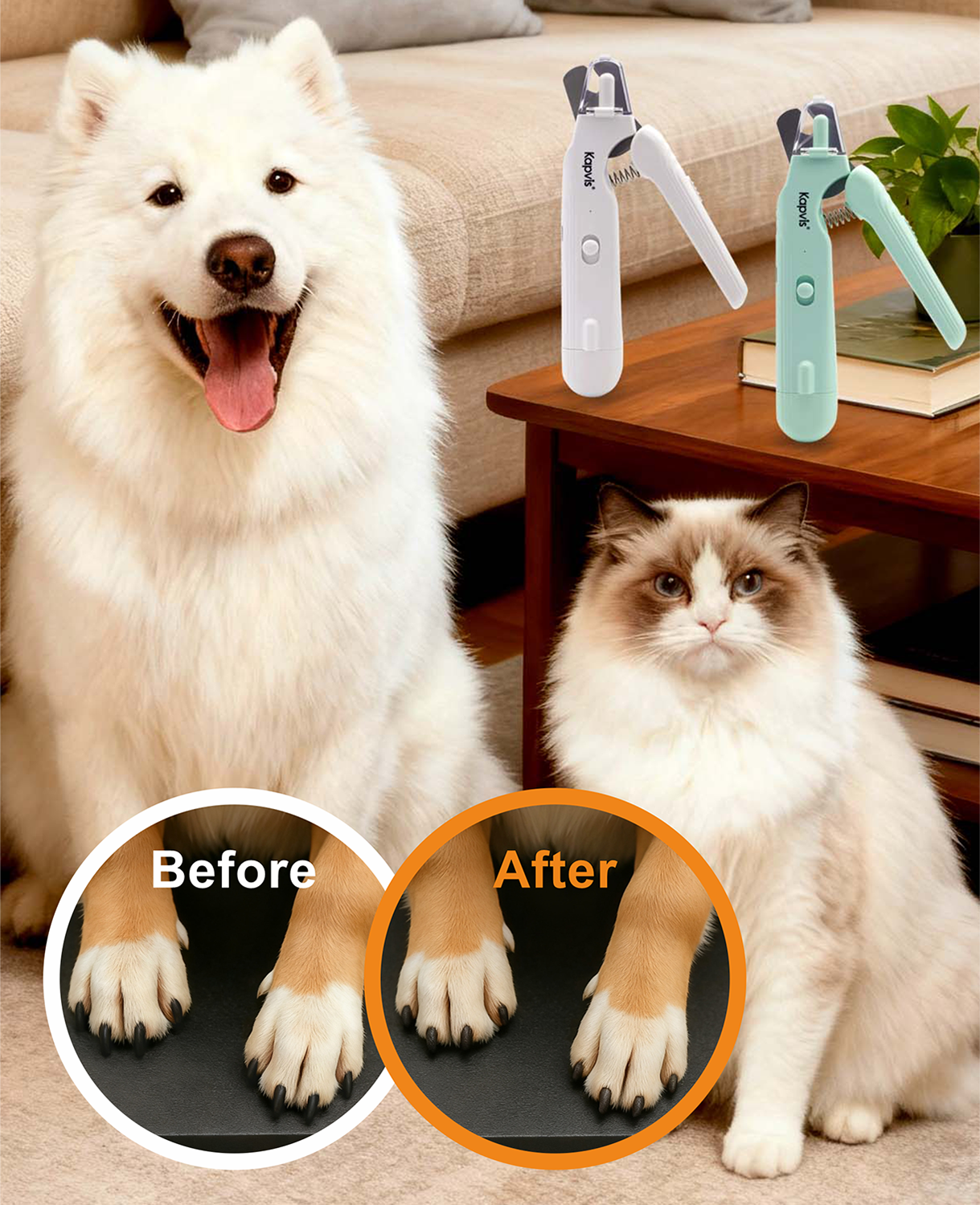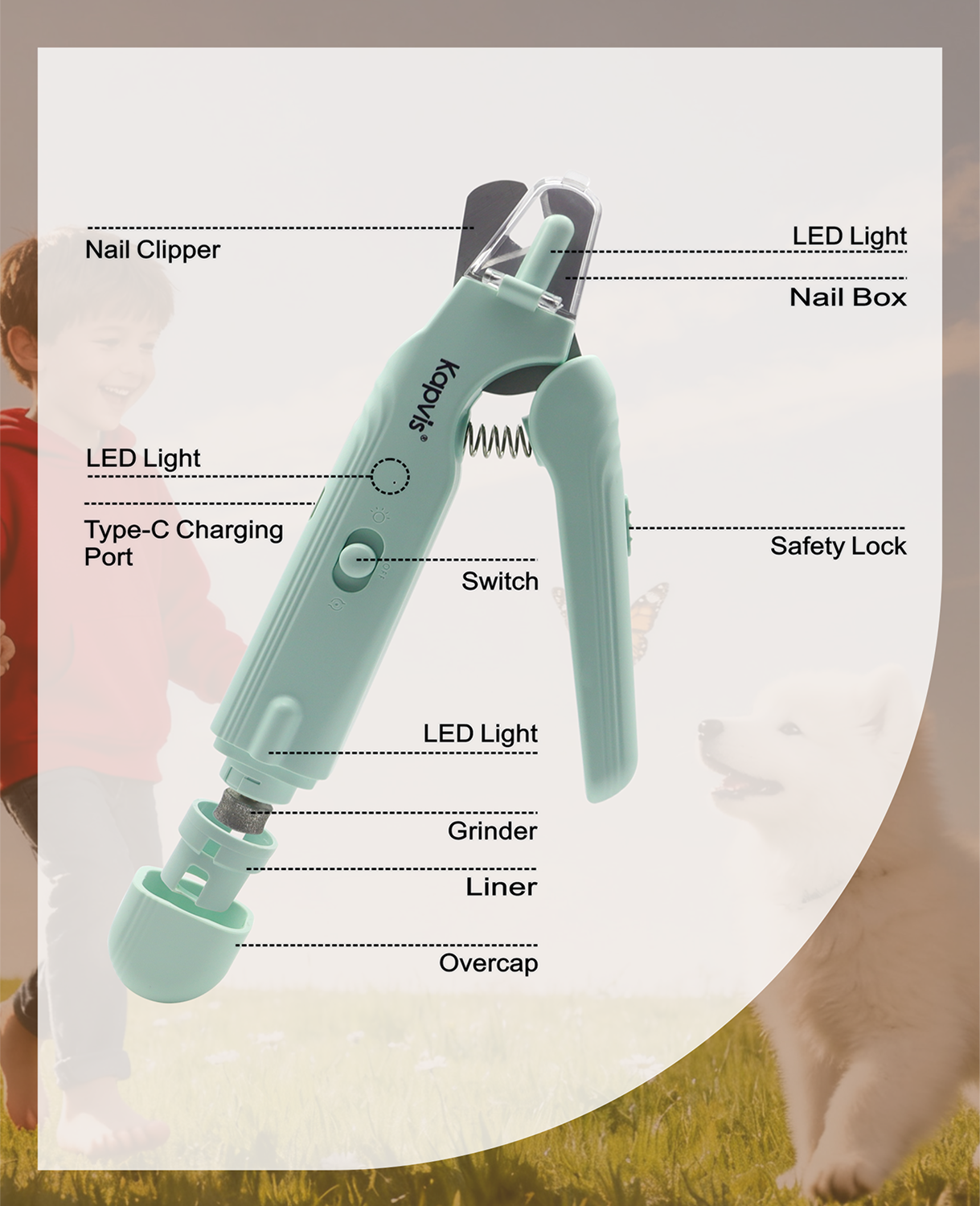 This upgraded 2-in-1 dog nail grinder and trimmer is designed for safe, quiet and stress-free pet grooming at home. With dual LED spotlights, a wide-angle dust cover, a durable carbide grinding head and a universal Type-C charging port, it’s the all-in-one nail care tool for dogs, cats, puppies and kittens.